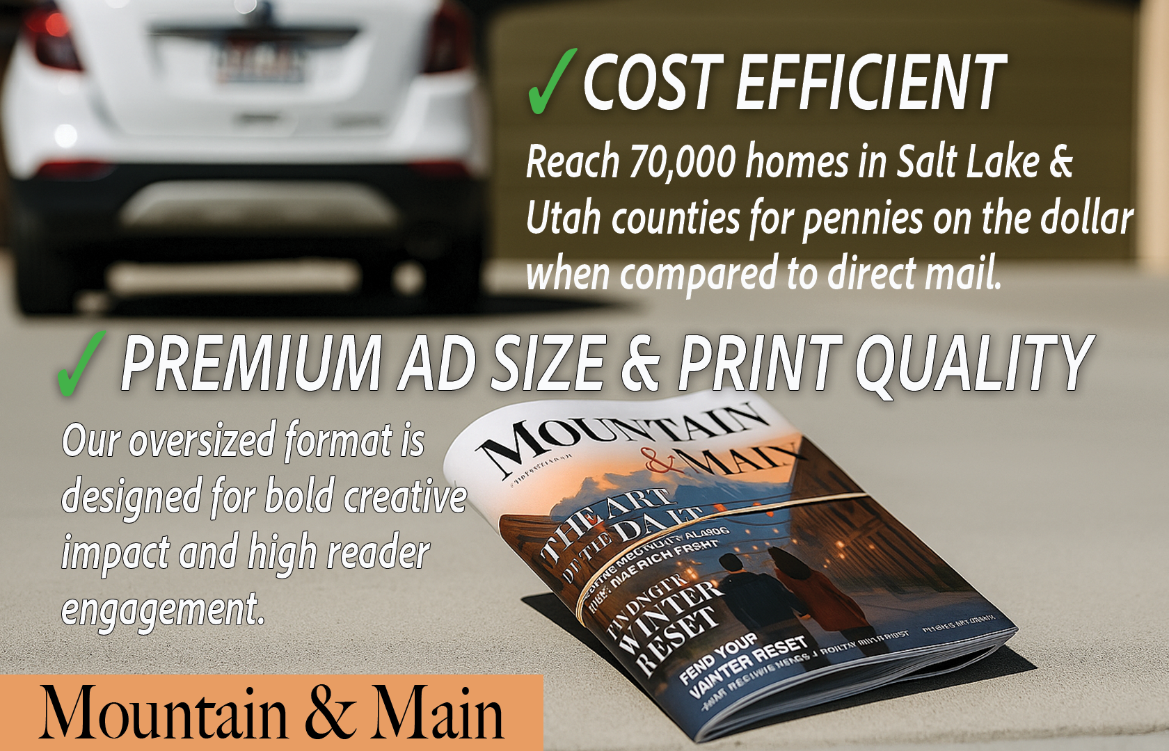 Each issue of Mountain & Main is available online in a clean, digital format - you can access the magazine anytime, anywhere. When our first issue goes live, the sections below will open and give you instant access to the stories, style, and local energy of the Wasatch Front. The premiere Valentines issue will be distributed near the end of January 2026. you’ll be able to jump in and contribute - submit your event for inclusion in our calendar section, “The Main Event.” You can enter contests, win prizes, and contribute to building a stream of quality content.